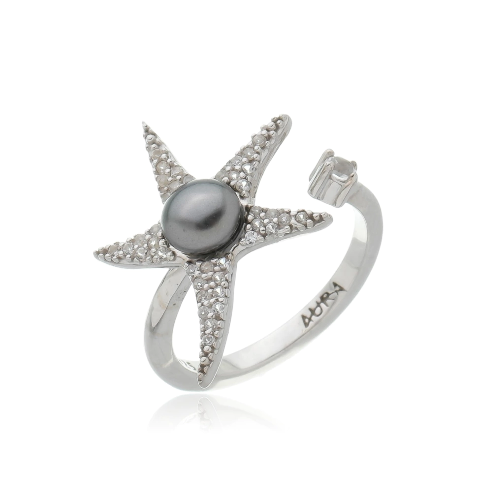 Seu destaque é uma estrela do mar cravejada com brilhantes topázios incolores, que adicionam um toque vibrante.