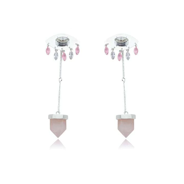 Com seu design versátil, você pode usar apenas a parte superior, um elegante olho com navetes de Swarovski, para um visual minimalista ou então,adicione a corrente com Quartzo Rosa na ponta que possui duas opções de encaixe, permitindo que você use o brinco completo em dois tamanhos diferentes.