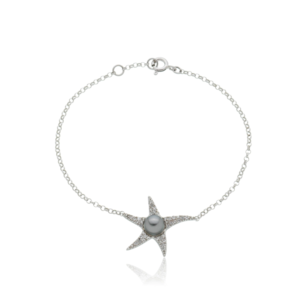 A pulseira Tálassa possui uma pérola negra de Svarovski e uma encantadora estrela do mar, é uma combinação perfeita de elegância e inspiração marítima. A pérola negra e a estrela do mar ao centro adicionam um toque de charme e beleza, tornando essa pulseira uma verdadeira joia única, perfeita para quem busca um acessório delicado.